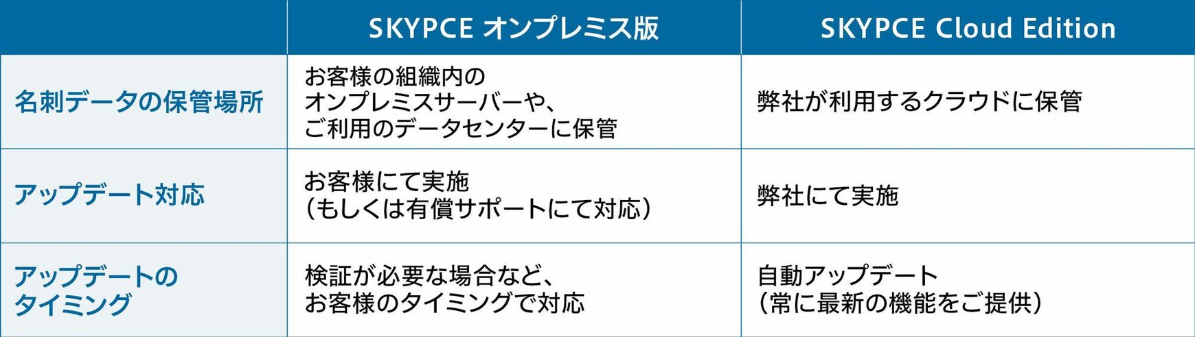 SKYPCEオンプレミス版とクラウド版の比較表 (Sky提供)
