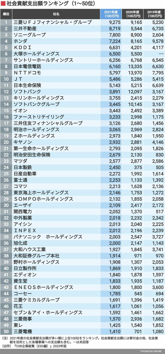 ビジネス #CSR企業総覧 前の記事 次の記事 「社会貢献にどんとお金を出す」100社ランキング トップは三菱UFJフィナンシャル・グループ 7分で読める 公開日時:2023/03/13 05:30 伊東 優 東洋経済『CSR企業総覧』編集部 『会社四季報・未上場会社版』編集長 フォロー 1/7 PAGES 2/7 PAGES 3/7 PAGES 4/7 PAGES 次ページが続きます:【【ランキング】社会貢献支出額51~100位は?】 5/7 PAGES 6/7 PAGES 7/7 PAGES
