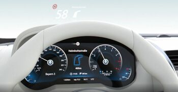 自動車のフロントガラス上に走行中の速度や道路の形状などを映し出す「ヘッドアップディスプレイ」と呼ばれる技術。あるドイツ車で採用されているヘッドアップディスプレイは、日本企業の半導体によって支えられている。