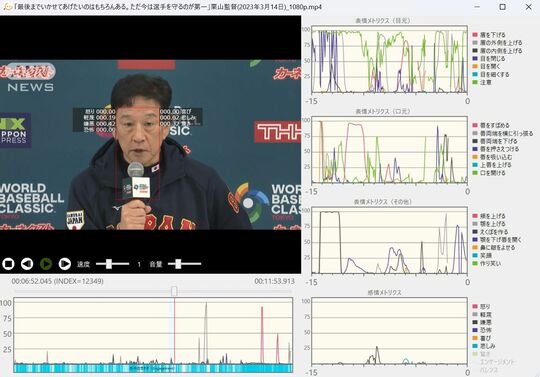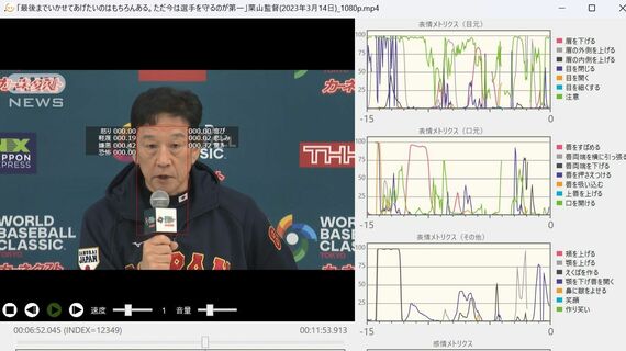 3月8日に開幕を迎えたワールド・ベースボール・クラシック2023(WBC 2023)。日本代表・侍ジャパンは、順調にコマを進め、16日にイタリアとの準々決勝を迎えます。本稿は、14日、イタリアとの対戦を前に会見に出席した栗山英樹監督の想いを、監督の表情から推察したいと思います(※分析に用いた動画はこちらです)。