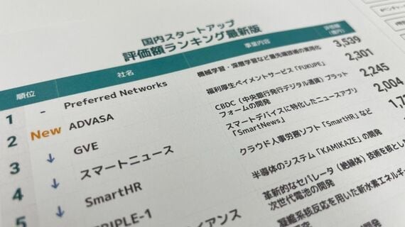 STARTUP DBは1月版のランキングで、「ADVASAが2301億円で2位に急上昇」とタイトルをつけていた。