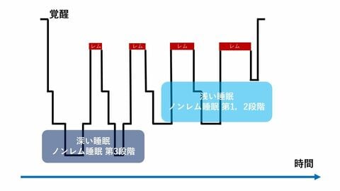 人は寝ている間に、レム睡眠(脳が活動している状態)と、ノンレム睡眠(脳が休息している状態)の2種類の睡眠状態が繰り返されている。