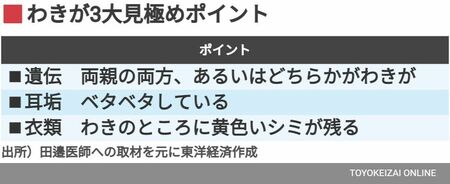 こうしたことを踏まえて、田邉医師にわきがの見極めポイントを聞いた。この3つに当てはまらない場合はわきがではない確率が高いので、過剰な心配は不要だ。