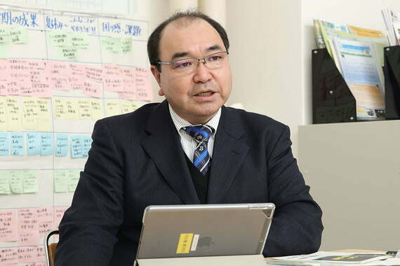 「小・中学校の相互乗り入れ授業を“出前授業”的ではなく、時間割にシステム的に組み込むことで、中学校教員が小学校での学びから新たな気づきを得たりするなど、各教員は自身の教員としての資質を高めるよい機会になっているようです。乗り入れ授業により自分の授業を空けることになりますが、その時間は市独自で雇用する非常勤講師を配置しフォローすることで、業務の多忙化につながらないよう配慮しています」(松永氏)