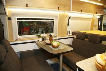 これらのうち、キャンピングカーとして本格的な装備を持つのは、ユーロバーデン5.4、オリジン5.4、ダビンチ6.0の3台で、8ナンバーのキャンピングカー登録車となる。いずれもイタリア製家具を使った欧州風の室内を持ち、高級感は満点だ。運転席や助手席を後方に180度回転し、2列目シートとの間にテーブルを設置すれば広いダイネットにすることが可能。また、室内後方には大人2名が就寝できるベッドスペースを持ち、室内中央の左側にはキッチンも装備する。