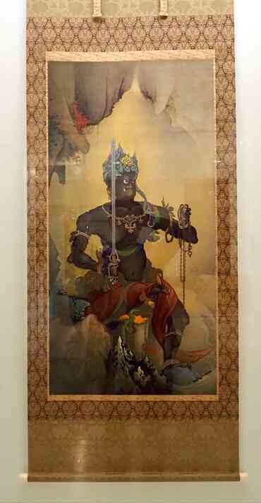 まず紹介したいのは、明治以降の絵画で初めて重要文化財に指定された4つの作品の中の一つ、狩野芳崖(1828〜1888年)の「不動明王図」(展示期間終了)だ。1950年に施行された文化財保護法に基づいて、1955年に指定された。
