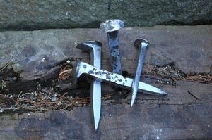 なぜ、「犬釘」と呼ばれるようになったのか。その理由は釘の頭の部分が、ちょうど犬の顔を正面から見たように、左右の耳があり、中央が鼻のように見えるからだ。