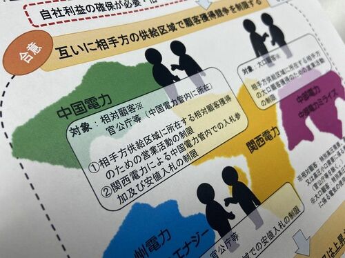 具体的には、契約の獲得が見込めない高値の料金水準をあえて顧客に提示することで販売競争を回避していたと公取委は指摘している。官公庁入札では、提示する料金の水準を関電が九電に伝え、その情報を基に九電が電気料金を引き上げるといった違法行為があったという。