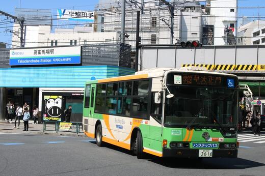 早稲田通りは名前の通り、早稲田大学へと通じる大通り。安価な飲食店や古書店などが集まり、東京を代表する学生街として名高い。大学までは少し距離があるため、高田馬場駅前と早大正門の間には、都営バスの学02系統が頻発している。