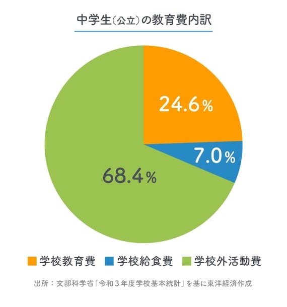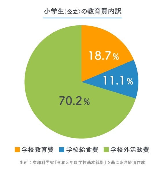 小中学生の子どもに「教育費がかかる」といえば、多くは「塾や習い事の費用がかかる」という意味だろう。それもそのはず、文部科学省が2022年12月に公表した「子供の学習費調査」によると、学校や塾など保護者が子ども1人に対して支出した1年間の学習費の総額は公立小学校で約35万円、公立中学校で約54万円。そのうち、学習塾や習い事など「学校外活動費」は公立小学校で約25万円、公立中学校で37万円と実に約7割を占めているのだ。