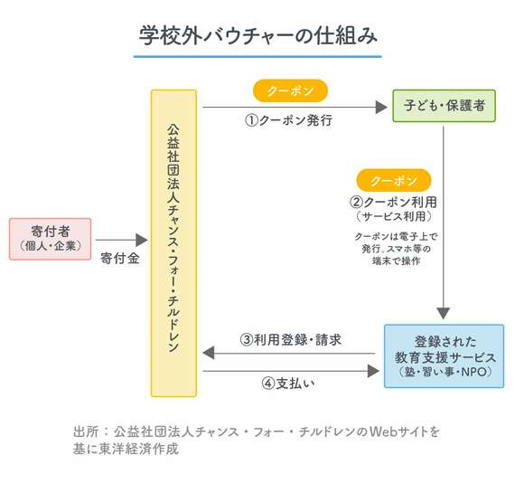 学校外の教育サービスに利用を限定した点で、これまで幾度か議論されてきた「教育バウチャー」とは性質が異なる。教育バウチャーの対象は学校教育、つまり学費の負担を軽減するものだからだ。