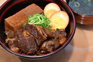 「肉めし」(税込1000円)は牛すじやみすじなどをしょうゆだれで煮込み、ごはんの上に載せたメニュー。