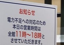 通常の閉店時間が20時の百貨店は、震災後、電力時間がピークとなる18時以降の営業を見合わせ、18時閉店とする動きが相次いだ。現在は照明の消灯などで節電を続けながら、徐々に営業時間の正常化へ向かっているが、三越や伊勢丹では19時閉店とするなど営業時間短縮の流れは続いている。平日は、夕方から閉店時間までが売り上げの中心となる首都圏の店舗では、販売機会の逸失につながっている。