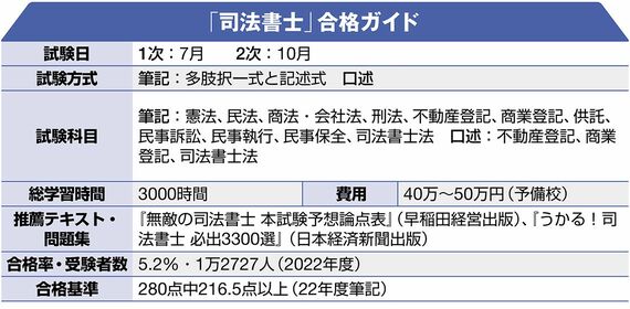 晴れて合格後は、企業の法務部で企業法務に携わる人もいるが、圧倒的に多いのは自らの事務所を持つ開業司法書士。都市部では1〜5年ほど司法書士事務所に勤務した後に独立するのが一般的である。地方ではそのまま開業する人も少なくない。司法書士の数が少なく、事務所の求人も少ない一方、ニーズは高いからだ。