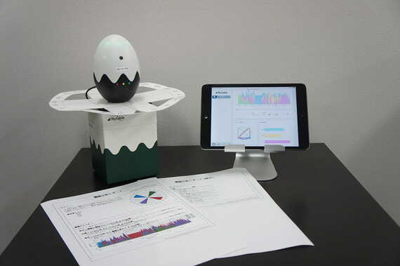 使用方法は、簡単だ。たまご型レコーダーをテーブルに置くだけで、あとは録音からアップロード、「振り返りワークシート」などさまざまな種類のレポート生成まですべて自動で行われる。つまり、対話をリアルタイムに分析し、“見える化”することができるのだ。教室のように子どもたちが話す騒がしい環境でも安定した分析が可能である点が大きな特長となっており、1台で8人程度まで利用できる。複数台使えば、大人数でも対応可能だ。