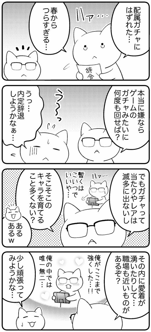 この時期になると、「配属ガチャに外れた」という話題を耳にします。「配属ガチャ」とは、入社後の配属先がカプセル玩具やソーシャルゲームのガチャのように、開けてみるまでわからないことに例えた言葉です。「SSR配属先」に当たればいいけれど、ハズレを引けば、それが原因で心身を壊したり、成長や経験の妨げになってしまったり……。