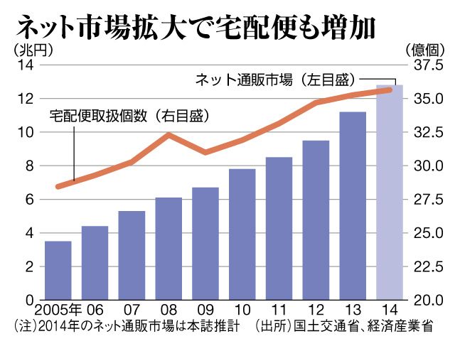 右肩上がりの成長を続けるネット通販の市場規模は今や10兆円を超す。日本郵便の高橋亨社長が「ここで数字を伸ばせなければ、われわれの事業に先はない」と危機感を示すように、宅配事業者は通販拡大に伴う配送需要の囲い込みに必死だ。