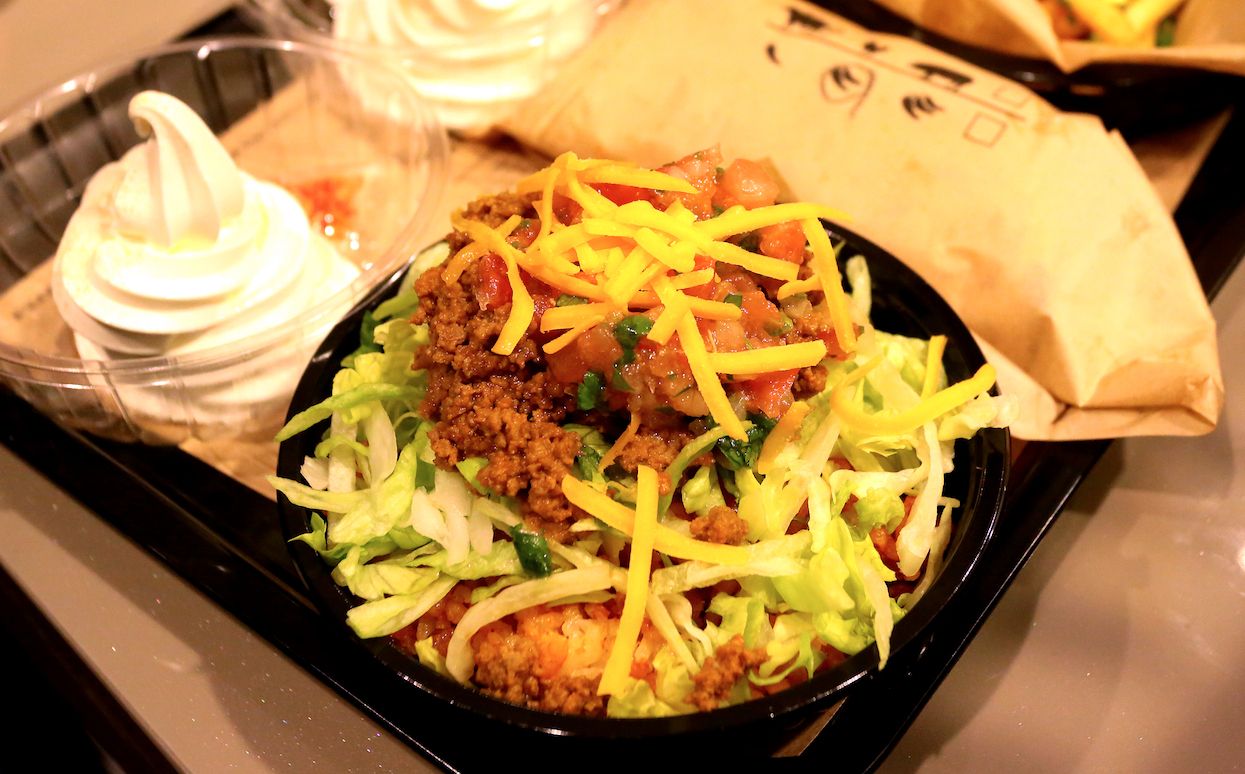 日本独自商品の「タコライス」(530円、撮影:今井康一)