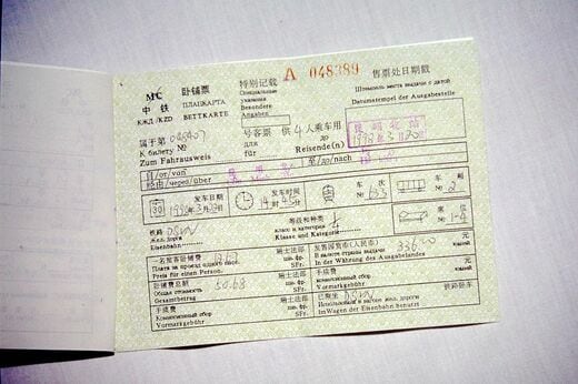 昆明拠点の旅行会社に「軟卧車(1等個室寝台)をとっておいてほしい」と依頼したところ、出てきた切符を見て驚いた。「ベトナム行き国際列車に連結されている軟臥車に乗って河口まで行け」というのだ。チケット券面は漢字とロシア文字、そしてドイツ語を併記、運賃はスイスフラン建て、というシロモノ。冷戦時代のソ連・東欧圏の旅を思い起こさせるが、それもそのはず、「北京からモスクワ行きの直通列車で使われる切符と同様の仕様」ということだった。