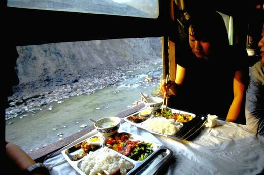 唯一、他の車両への「外出」を許されたのは、昆明―河口間のみを走る国内用編成に連結されている食堂車へ行けた時だった。車内でしっかりと調理された数品の本格中華料理を味わいながら、峻険な南渓河の風景を眺めたひと時は格別だったことを思い出す。