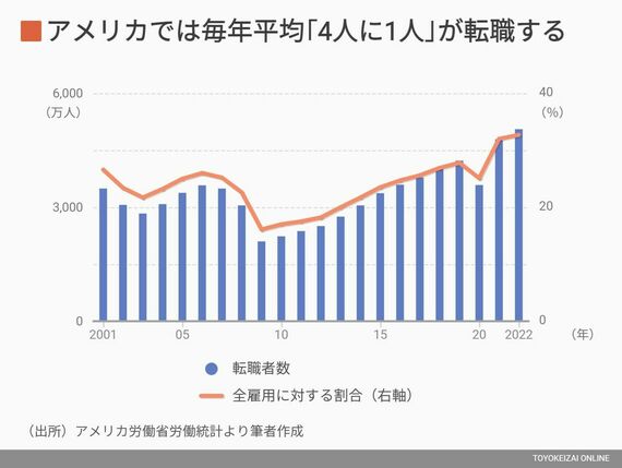 たとえばアメリカでは、2022年の1年間で5048万人もの人が自主的に転職しました。これは、労働者の実に3人に1人にのぼります(参照:データが示す「転職が日本人の給料を上げる」根拠)。転職した人がみんな「一部の優秀な人」だったという理屈は成り立ちません。