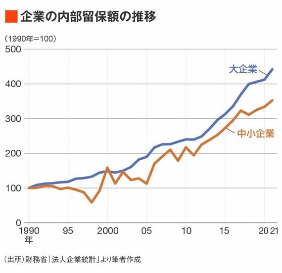 実際、日本では企業の規模に関係なく、内部留保が増え続けています。やはり日本でも転職がもっと増えないと、給料は上がりそうもありません。