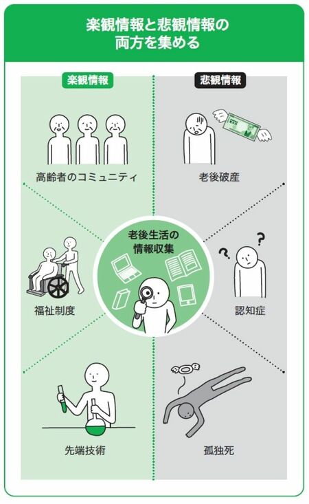 今はスマホひとつあれば、インターネットでさまざまな情報を調べることが可能です。ただし、情報を知れば知るほど不安になってしまうことがあります。そこで重要なのは、楽観情報と悲観情報の両方を集めるという大原則です。