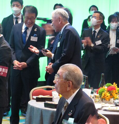 鈴木氏はセブン‐イレブンを日本に持ち込んだ当人だけに、出席するのは当たり前のこと。それよりも周囲を驚かせたのは、セブン&アイ社長の井阪隆一氏の近くに座っていたことだ。