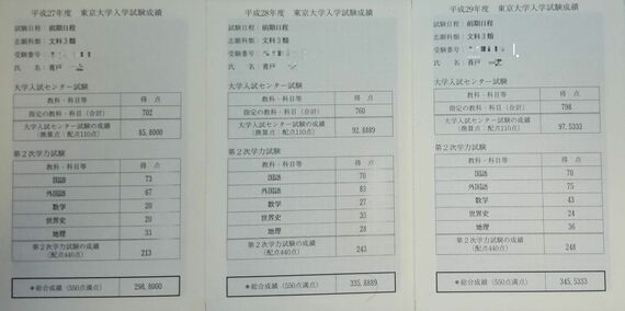 模試は受けず、ひたすら本番に焦点を合わせた結果、センター試験で自己最高の798/900点を叩き出し、東京大学に最低合格点から1.9点差で合格しました。