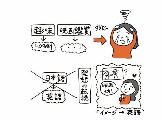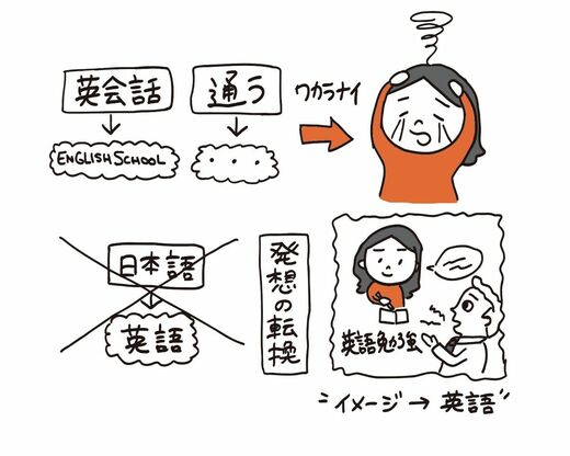どうですか?「英語のレッスンをとっています」。これで同じことが言えています。最初に日本語を思い浮かべると、英語を作るのをすごく邪魔しちゃうんです。「英語を習っている」映像を思い浮かべて、 それを知っている英語で言ってみる。