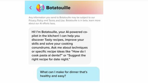 数カ月前にAIの導入計画を発表して以降、バズフィードは実験的な試みをいくつも進め、ほかのメディア企業よりも積極的にAIを受け入れてきた。そのバズフィードは5月23日、これまでで最も野心的なサービスとして無料のチャットボット「ボタトゥイユ」をお披露目した。バズフィードのグルメブランド「テイスティー」から、オススメのレシピを教えてくれるというものだ。