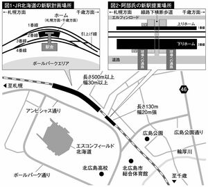 こうした現状に対し、交通コンサルタントの阿部等氏は、「北広島駅隣の島松駅の待避線を活用して臨時列車の折り返しを行えば、2駅分列車を回送する必要は生じるが、新駅の設備は130mの対向式ホーム2面のみに簡素化でき、工費は20億円程度に、工期は2年に大幅に圧縮できる」と力説する。
