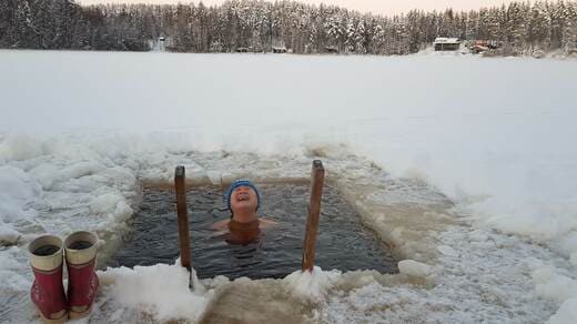 凍った湖に穴を開けて「アイスホールスイミング」を楽しむのも、サウナの本場フィンランドで人気のある健康法(写真提供:こばやし あやなさん)