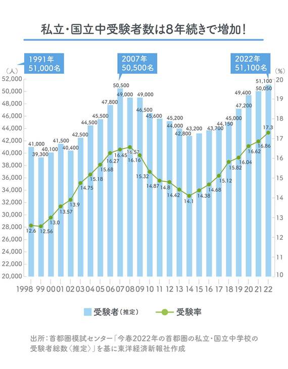 ただし、これらの3要素を身に付けるには、今までのような学習方法では太刀打ちできないこともあって、中学受験者数が増えたといわれています。また、親がロールモデルにならない焦りや不安が、私学への期待に変わっているとも考えられます。