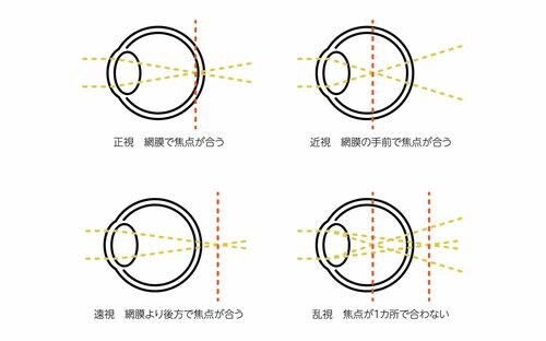 眼球はカメラのような構造になっていて、眼球の表面にある角膜から入った光は奥にある水晶体を通り、さらに眼底にある網膜でピントを合わせ、映像を認識する。眼軸長が長いと、網膜よりも手前で像が結ばれてしまい、遠くのものが見えにくくなる。