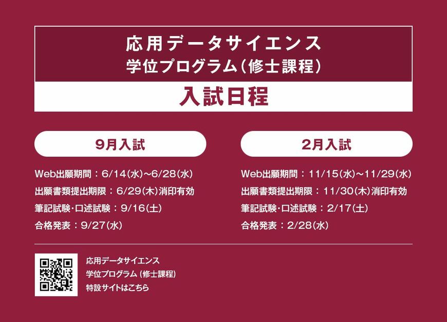 応用データサイエンス学位プログラムは、理工学分野のみならず、大学院の3研究科(経済学・理工学・地球環境学)連携で文理横断型の学位プログラムを設けているのも大きな特徴だ。「理論と実務の架け橋」をキーワードに、さまざまな専門領域でデータサイエンスを応用・展開している教員やビジネスの現場で活躍する実務家など、多彩な顔ぶれの講師からの学びにより、実社会で即戦力として活躍できる素養が身に付く仕組みとなっている。