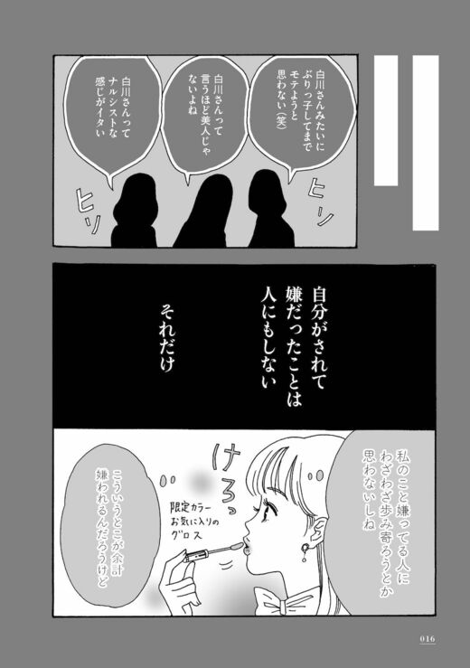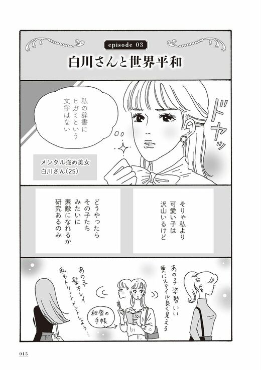 周囲から悪口や嫌味を言われても意に介さず、強く美しく我が道をゆく主人公、白川さん(画像:『メンタル強め美女白川さん』より)