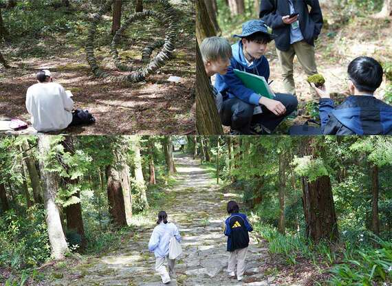 ここでも教室を飛び出す学びを実践している。神山町の山中には、町内に滞在して作品を制作する「神山アーティスト・イン・レジデンス」に参加したアーティストの作品が点在しているため、校舎裏の大粟山に出かけて作品を見て回り、「アートとは何か」などを皆で考えた。校名のとおり、まさに神山町をキャンパスと捉え“まるごと”学ぶことを体現した実践だ。