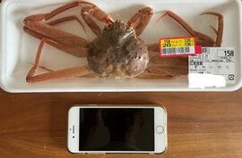 こちらの写真は毎年春ころに売れ残る小さなズワイガニです。サイズからメスだと思って撮影用に買ったら、驚いたことにオスでした。可食部が少なく、ほぼ食べるところがありません。メスだけでなく、まさかこんな小さなオスまで水揚げされているとは……。