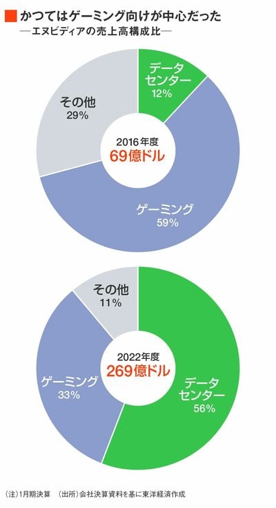 かつて売上高の過半を占めていたのはゲーミング向けだ。だが、市場は成熟しているうえ、浮き沈みが激しい。暗号資産のマイニング用途で顕著だったが、相場の上昇・下落によって需給バランスが崩れやすい。2023年1月期通期でみると、ゲーミング向けは過剰在庫を抱えたことで前期比27%の大幅減収となった。