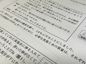2012年度の全国学力テストから加わった理科の中学分野(中学3年対象)で、10%の食塩水を1000グラムつくるのに必要な食塩と水の質量をそれぞれ求めさせる問題が出題された。