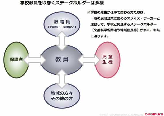 とはいえ、空間づくりによって働き方をよりよくしていく手だてがないわけではない。前田氏は、「オフィスと学校が大きく違うのは、ステークホルダーの種類。先生方は、児童生徒、保護者、地域、教職員など、多様な関係者に1人で対応しなければいけない。その特殊性が長時間労働につながっている面が大きい」とし、この点を踏まえた空間づくりが重要ではないかと考えている。