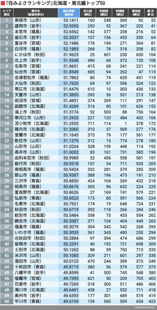 ライフ #住みよさランキング 前の記事 次の記事 「住みよさランキング2023」北海道・東北トップ50 山形県と福島県が上位に多数ランクイン! 3分で読める 公開日時:2023/06/24 05:30 東洋経済『都市データパック』編集部 フォロー 1/3 PAGES 2/3 PAGES 次ページが続きます:【県別ベスト3は?】 3/3 PAGES