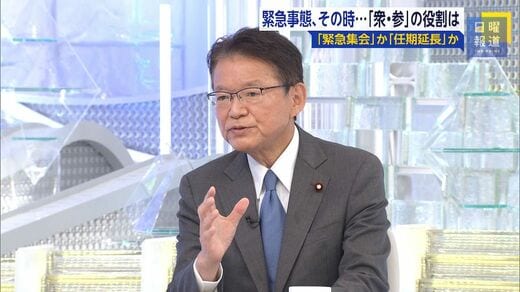 長妻昭氏(立憲民主党政調会長):こういう(与党などが主張する)憲法改正をすると、恣意的に議員任期を延長することも可能だ。それを決めるのは多数決だから。解散で失職した衆院議員の身分を戻すという案も出ていて非常に恣意的になる。任期を延長した場合も、では、いつ終わりにするのか。これも選挙が有利か不利かで恣意的になる危険性がある。われわれ立憲民主党は、党名にもあるように立憲主義だ。憲法の最大の役割は、国が暴走しないように国を縛っていくことだ。この縛りを大幅に緩めて恣意的にしてしまうのはおかしいのではないか。日本国憲法には、緊急集会という緊急事態に対応した知恵がすでに入っている。(衆院解散から国会召集までの)70日間しかできないと言う人もいるが、憲法審査会で呼んだ憲法学の権威の学者は、いやいや70日超えてもできると言っている。例えば、アメリカをはじめいくつかの国では、任期延長の憲法の規定はない。仮に暫時総選挙ができなければ、できる地域からやっていく。総選挙は同じ日にやるだけでなく、延期の手続きも法律であるので、そういう知恵を使ってやっていかないと。(国が)暴走する危険が非常に大きいと危惧している。