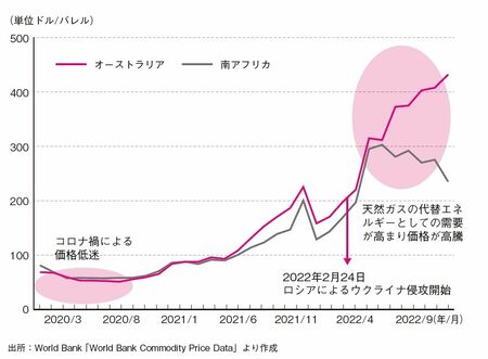 こうして石油価格は暴落しました。さらに石油だけではなく、アジアのLNGスポット価格は5ドル平均で推移していたのが、最安値となる1.75ドルを記録。石炭はオーストラリア産の価格(一般炭)が100ドル前後だったのが、20年の春頃には50ドルを割り込むまでに下落しました。石油、石炭、天然ガス、LNG、電力など、ありとあらゆるエネルギー価格は暴落し、史上最安値を記録する事態に至ったのです。