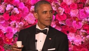 日本酒が注がれたお猪口を使って乾杯をする際、オバマ大統領は、噛みしめるようにして「私たち2人の友情と、2か国の最高の同盟に。そして、その末永い持続を願って」と語った。