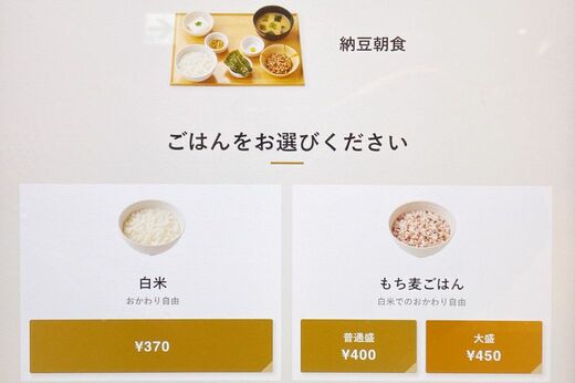 今回は最安値の朝食メニュー「納豆朝食」税込370円を注文しました。