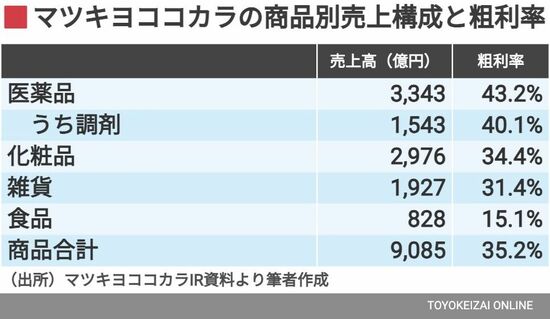 医薬品、化粧品の売り上げが大きいマツキヨココカラ
