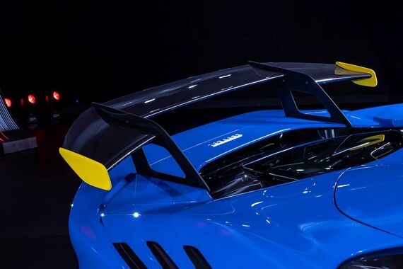 ボディには、さらに大型の固定式リアウイングと「シャットオフ・ガーニー」とフェラーリが名付けた可動式の空力用フラップが備わる。