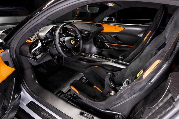 インテリアは、基本的にはSF90 ストラダーレに近い。ただし、さらに軽量化がひと目でわかるようなデザインとなっている。機能に直結する部分は、カーボンファイバー素材だ。